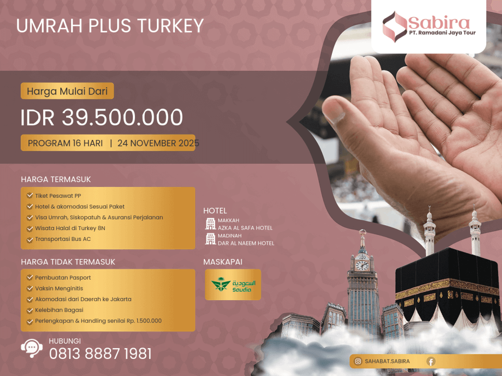Harga dapat berubah tanpa konfirmasi, menyesuaikan kebijakan Pemerintah Indonesia, Pemerintah Saudi dan Maskapai Penerbangan